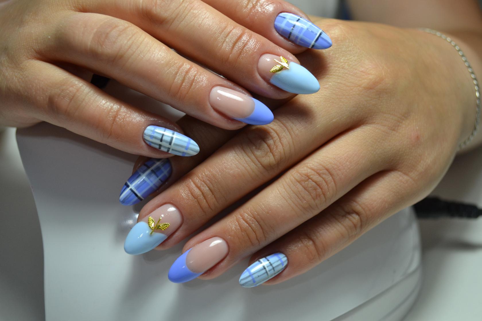 - сделать маникюр с покрытием гель-лаком. Для большего эффекта, лучше выбирать серые или синие цвета для фона, имитируя осеннее небо;