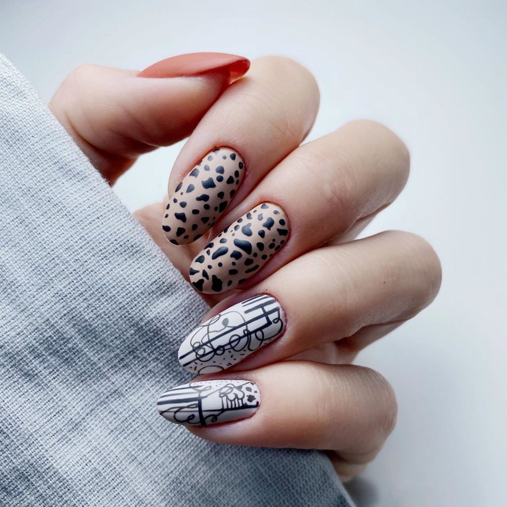 К примеру, традиционный классический французский маникюр отлично сочетается с геометрическим узором, а леопардовый мотив – с цветочной темой.