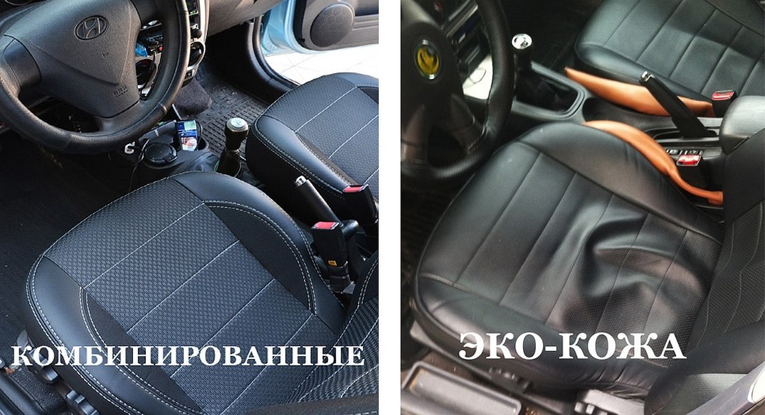 Комбинированные ткани используются для пошива чехлов, в которых рассчитывается нагрузка определенных участков. К примеру, при эксплуатации экокожи сиденье и материал верха начинают растягиваться уже через 6 месяцев.