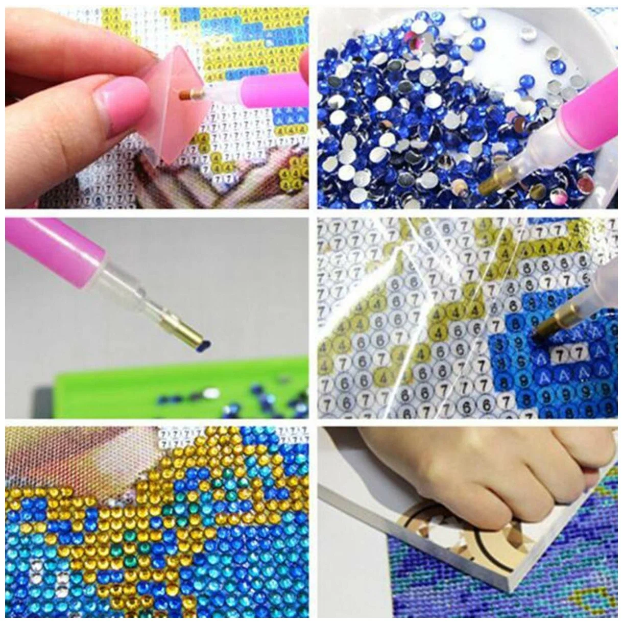 Готовые комплекты с алмазной вышивки всегда дополняются стилусом или пинцетом для выкладывания бусин. Стилус — это специальная пластмассовая палка с острым концом, который опускается в силиконовый гель и прикрепляет камушки на поделку.