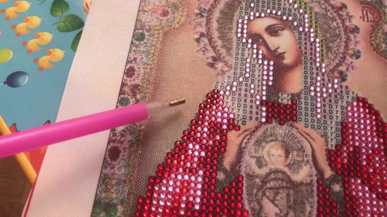 Готовые комплекты с алмазной вышивки всегда дополняются стилусом или пинцетом для выкладывания бусин. Стилус — это специальная пластмассовая палка с острым концом, который опускается в силиконовый гель и прикрепляет камушки на поделку.