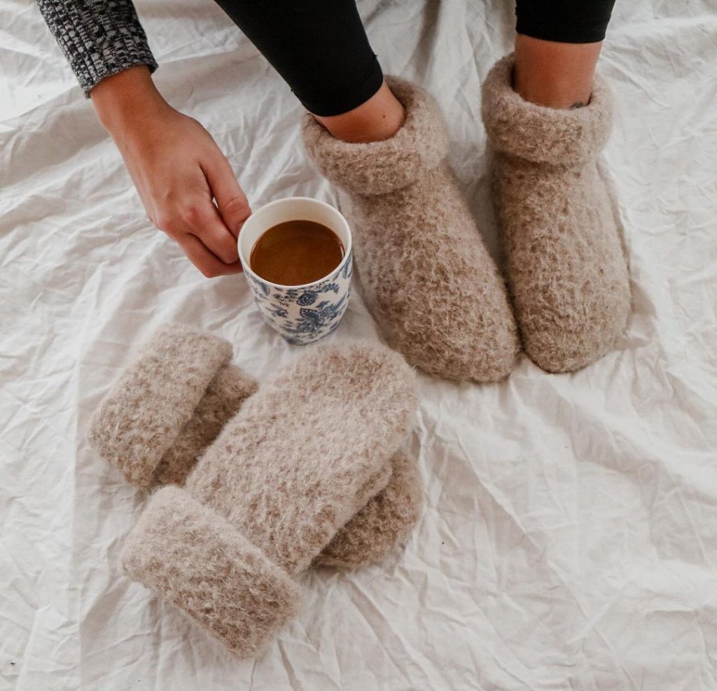 Уютные носочки для дома и согревающе-теплые варежки с отворотом для холодных дней.