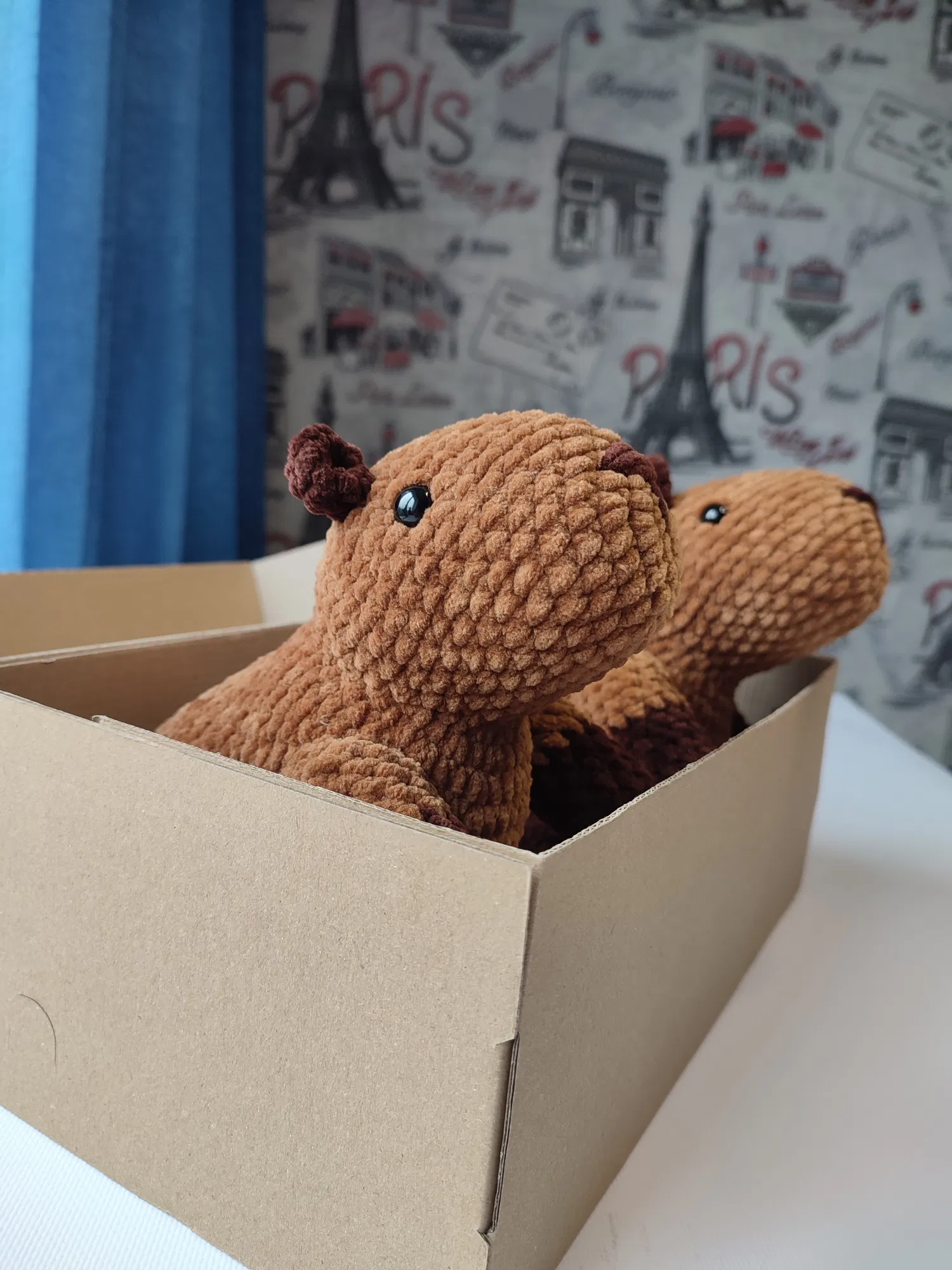 В этом задании мы будем создавать вязаную игрушку капибару с помощью плюшевой пряжи и крючка. Капибара – это большое грызуновидное млекопитающее, живущее в Южной Америке.