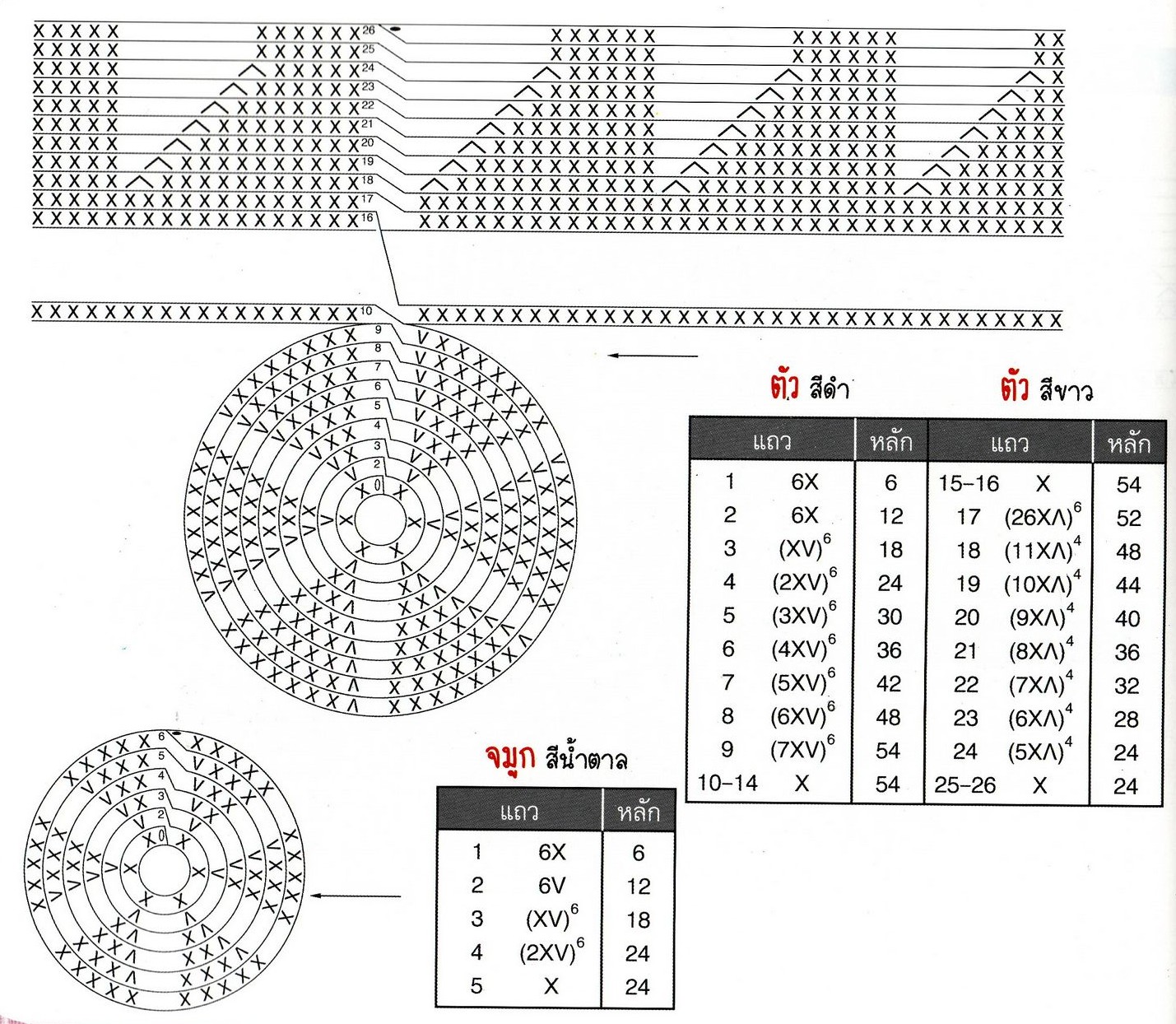 1 ряд. 6 сбн (6) 2 ряд. пр *6 (12) 3-5 ряд. 12 сбн (12) 6 ряд. (Уб, 4 сбн) *2 (10) 7-9 ряд. Би