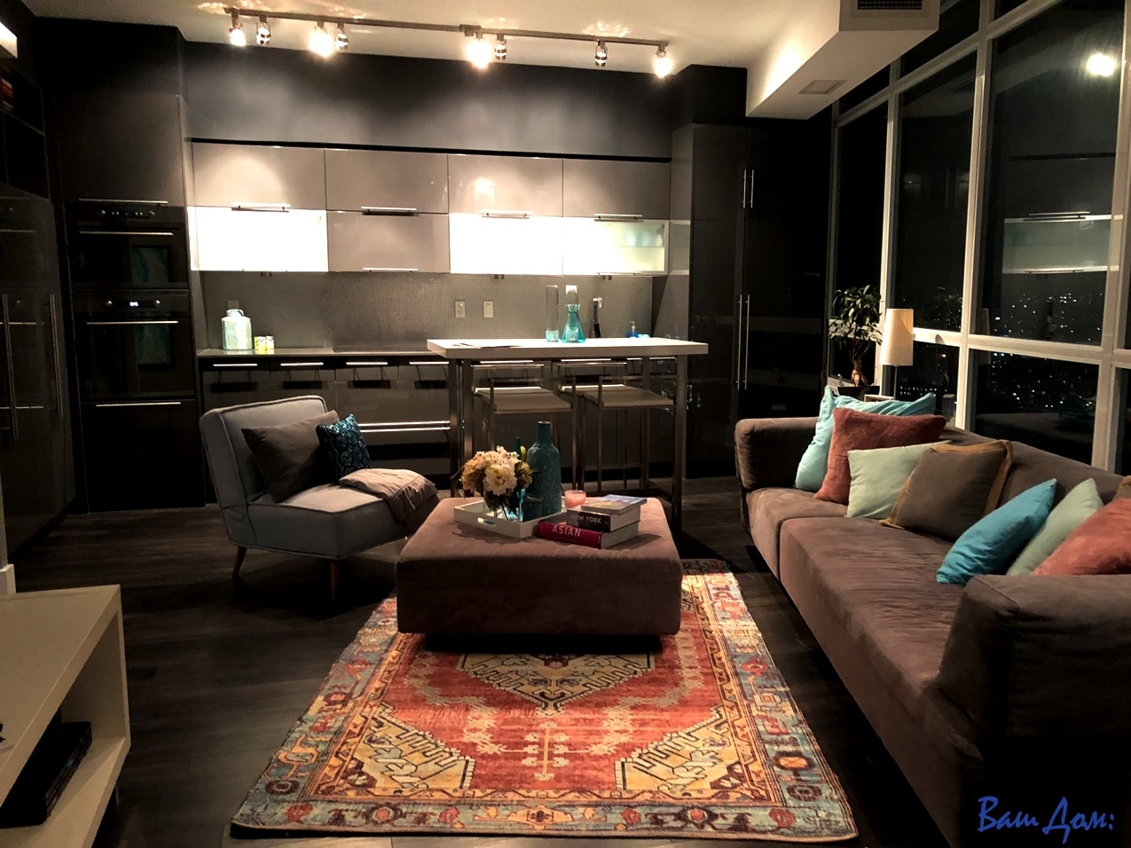 Важно не забывать о фокусной точке и игре цветов. Не стоит стелить ковер, который будет выбиваться из интерьера