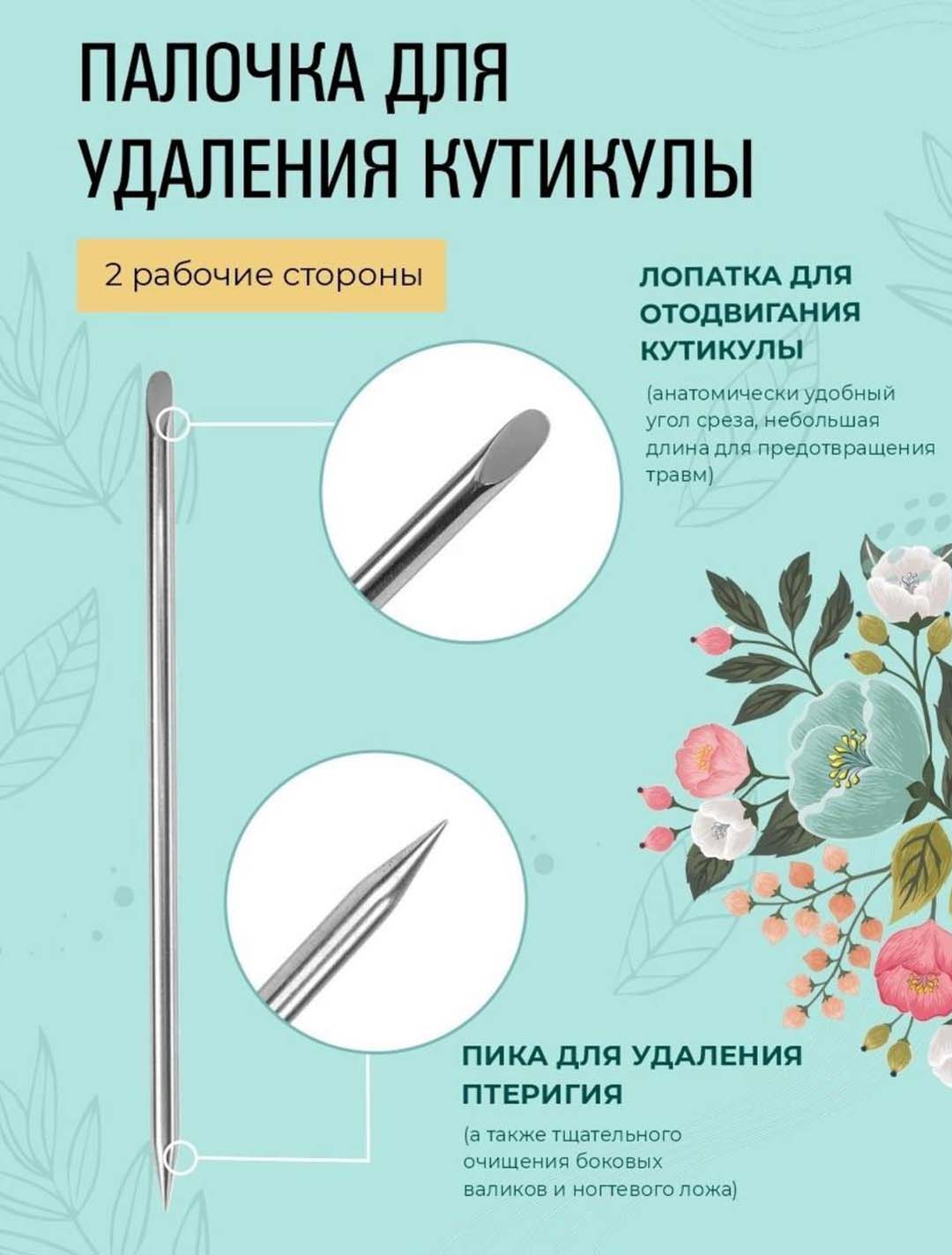 Фирмы «СТАЛЕКС» и «YKO» зарекомендовали свою продукцию, как одни из самых лучших на рынке, инструмент их производства с набором «прямой+скошенный пушер» станет отличной усовершенствованной заменой апельсиновой палочке в работе с кутикулой и птеригием.