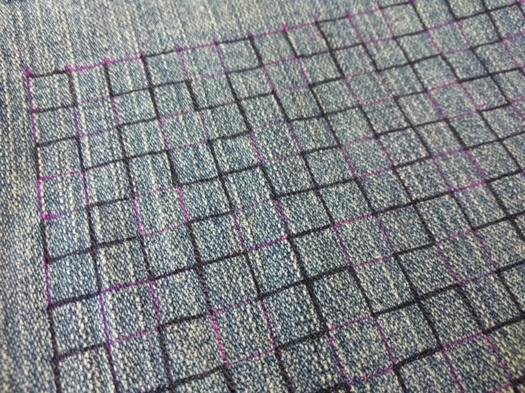 - вышивая в технике “сашико”, проведите еще одну линию. Продолжайте чередовать стежки;