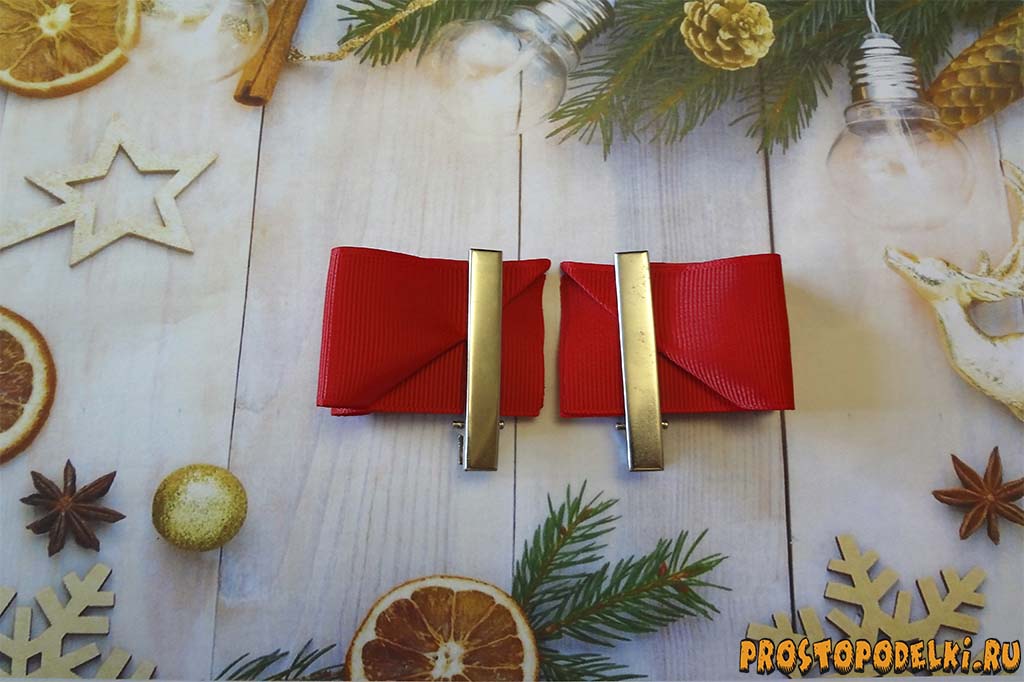 - при помощи термо-клея этот бантик склеивается на сгибе;