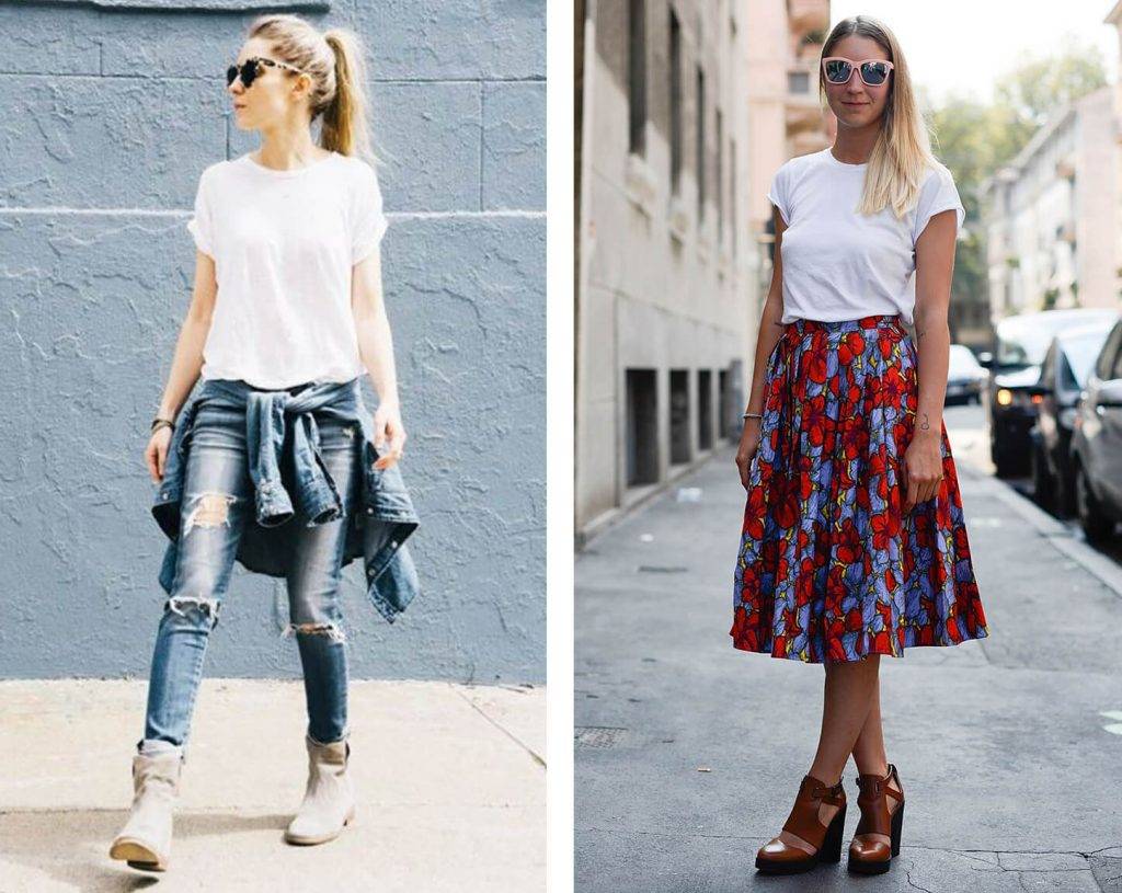Мы очень любим разнообразные топы и блузки, но, к сожалению, эти вещи не универсальны. Чего нельзя сказать о простых белых и черных футболках без надписей, декора и умопомрачительных декольте. Не смотря на внешнюю простоту, они подходят под все стили и образы. Футболки хорошо впишутся в деловой и кежуал лук, а в паре с красивыми аксессуарами вполне подойдут для наряда на выход