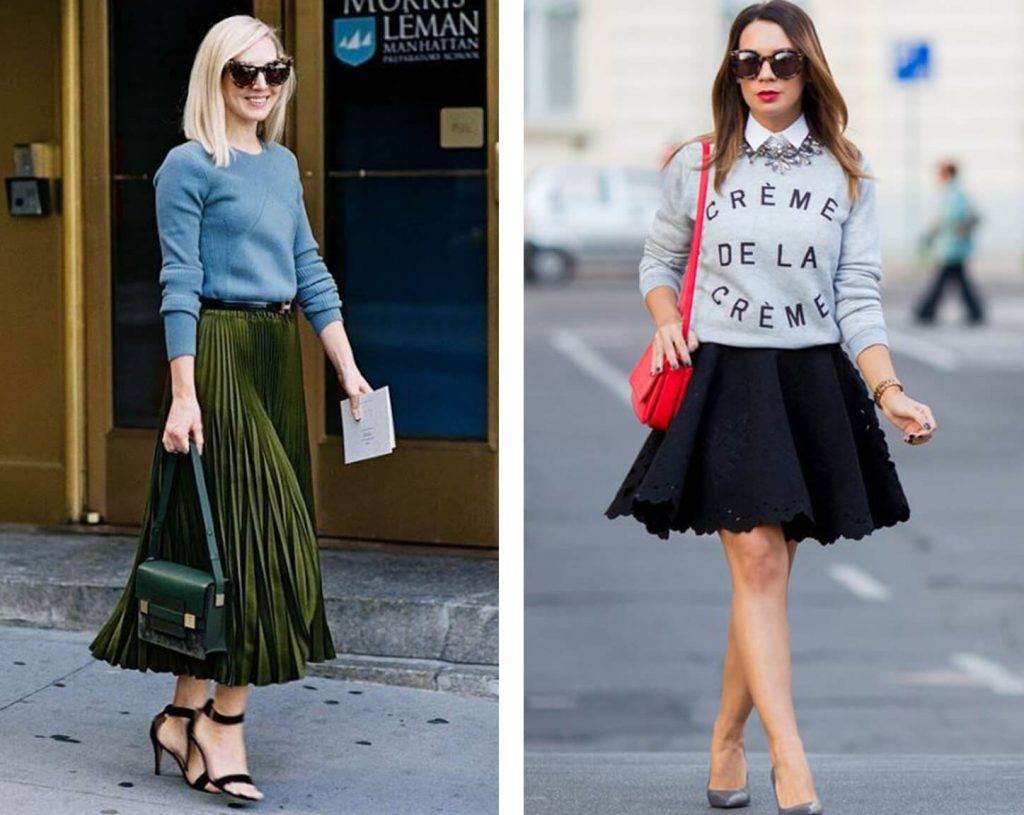 Для создания огромного количества образов вам потребуется лишь одна вещь — юбка-карандаш. Выбирайте модель из плотного трикотажа сдержанных тонов. В идеале остановиться на серой юбке среднего или темного оттенка. Именно этот вариант позволит создавать как строгие офисные, так и демократичные кежуал луки. Юбку-карандаш можно сочетать с рубашками и свитшотами, кроп-топами и футболками, изящными лодочками и удобными кроссовками.