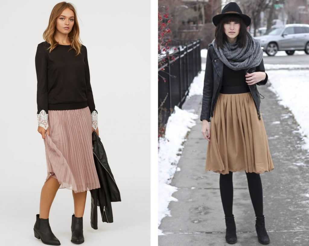 - Юбка длиной до колена, юбка миди или юбка макси.