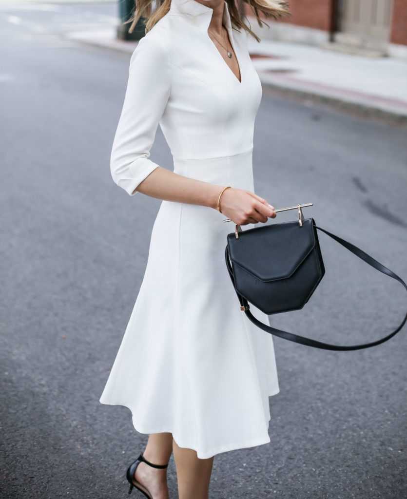 Ищите нейтральные платья с облегающим или с короткими рукавами. Их можно надевать под кардиган, блейзер или жакет. Вы получите от них максимальную пользу, поскольку их можно носить в разные сезоны. Важна длина. Платья длины миди подчеркивают фигуру и их легче сочетать с остальными вещами.