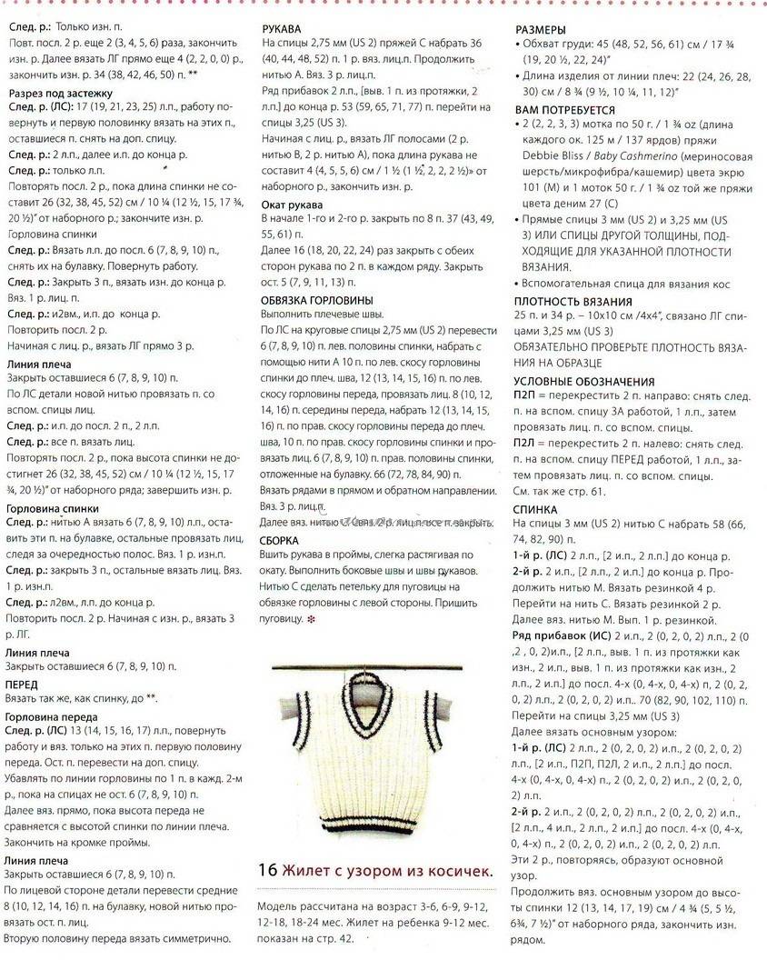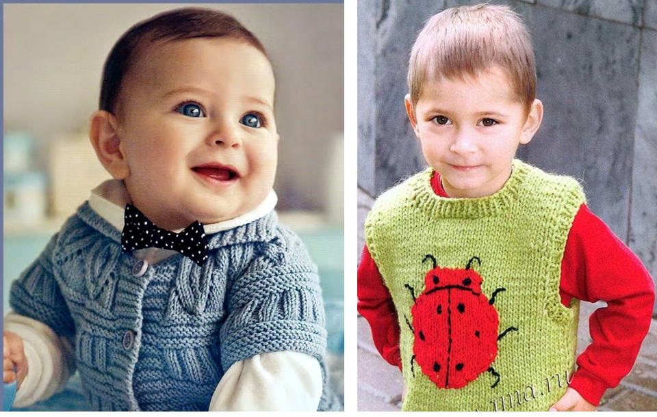 Ряд примеров схем и описаний вязаных жилетов мальчикам 2-3 лет: