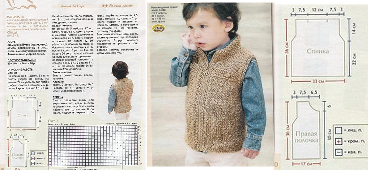 Как связать жилет для мальчика 2 – 3 года спицами: схема, описание