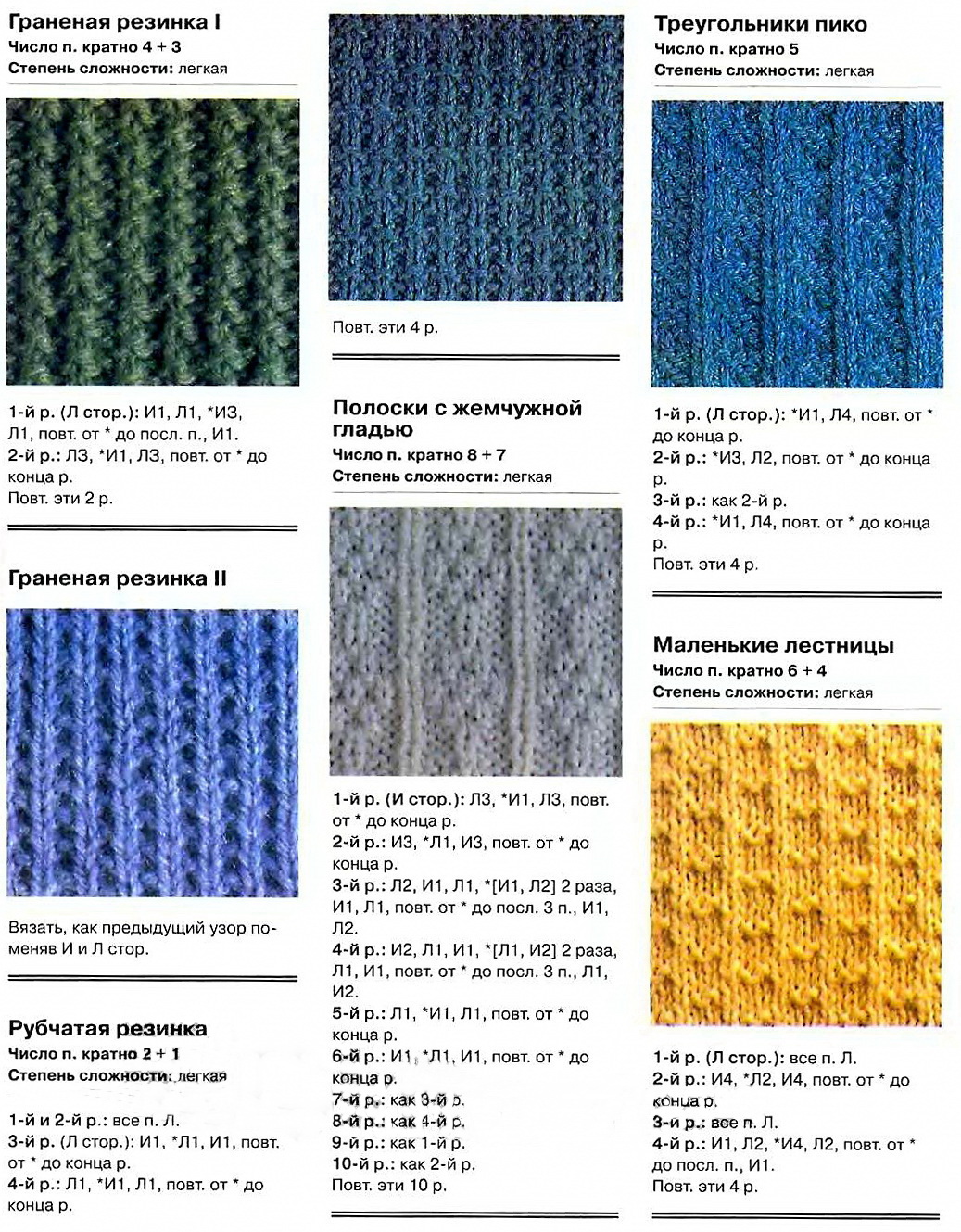 Чаще всего в схемах и описаниях вязанных спицами моделей вы встретите такие узоры.