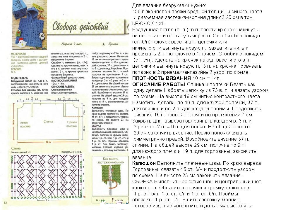 фото страницы из журнала по вязанию — жилет для мальчика с молнией