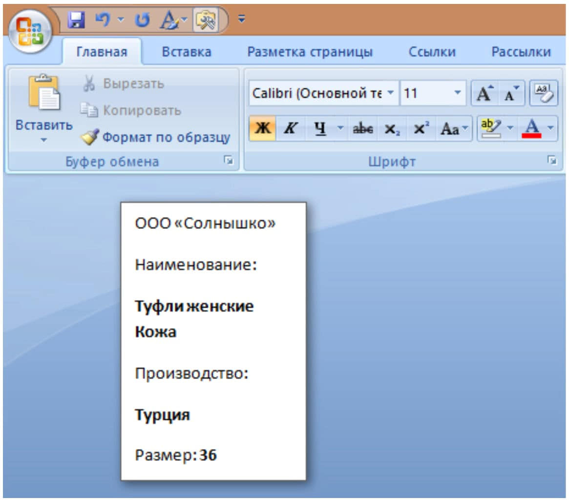 Сохраняем бирочку на компьютер, добавляем в документ Microsoft Word, задаем нужный размер и копируем на листе столько шаблонов сколько уместиться, затем относим в печать.