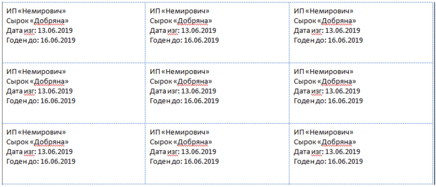 Теперь ленту можно разрезать на отдельные этикетки, а можно оставить и так, отрезая их по мере необходимости.