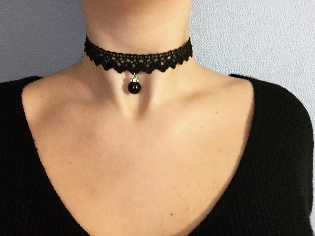Не теряет своей популярности чокеры. Модный аксессуар под силу сделать любому, главное — изъявить желание и проявить фантазию. Необходимо взять нужный отрезок бархатной или любой другой ткани и закрепить его с помощью клея на металлическом кольце. Затем повторить процедуру с другой стороны. Украшение следует носить на шее, соединив оба конца застежкой.