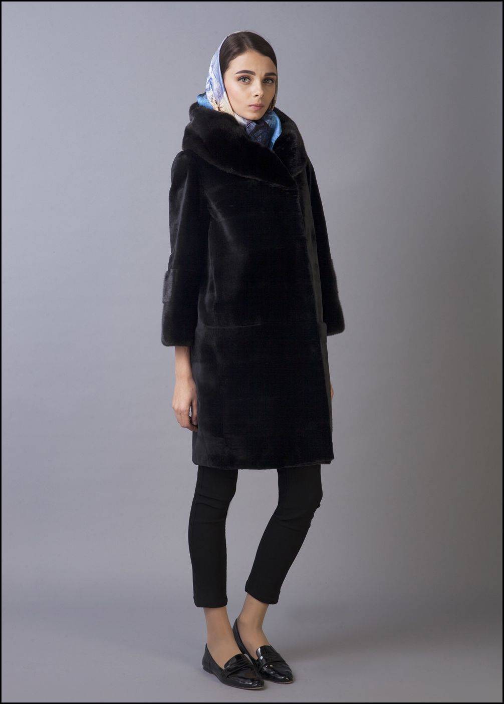 Черный цвет как в ткани, так и в мехе считается классическим. Он идеально скрадывает лишние сантиметры в области талии и бедер, придает стройности фигуре, очень хорошо сочетается с аксессуарами любых цветов, фасонов и фактур, будь это клатч из кожи питона или шейный платок с леопардовым принтом. Это на первый взгляд кажется, что про обычное черное норковое пальто мало чего можно поведать. Можно! Еще как!