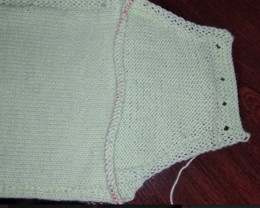 - Продолжать вязание спинки и переда лицевыми петлями до пройм, для спинки использовать метод частичного вязания;