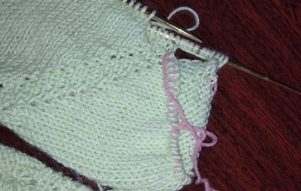 Провяжите ещё 1 лиц. ряд и отложите петли. Перейдем к вязанию переда.