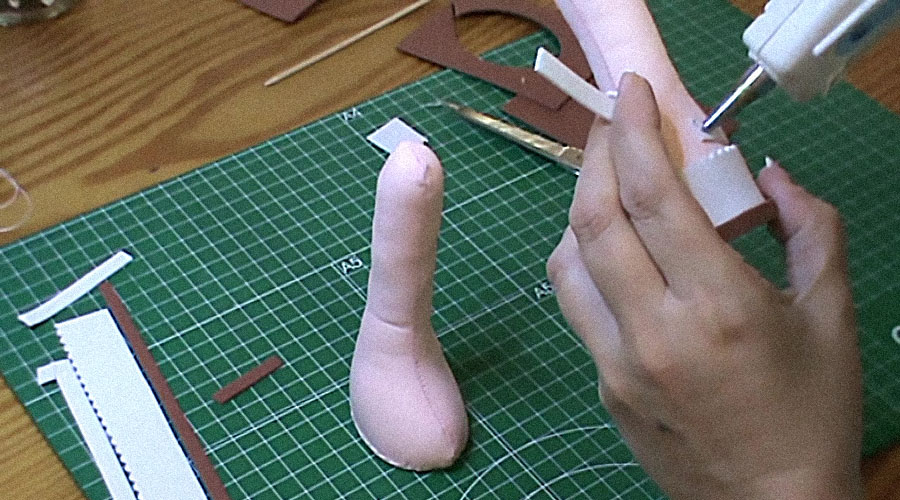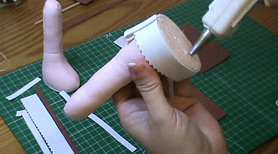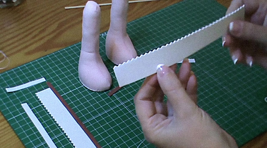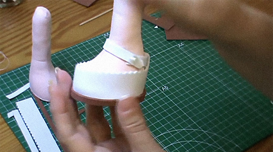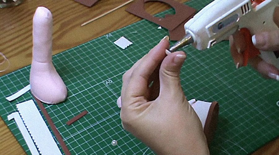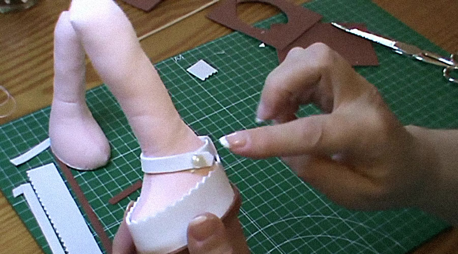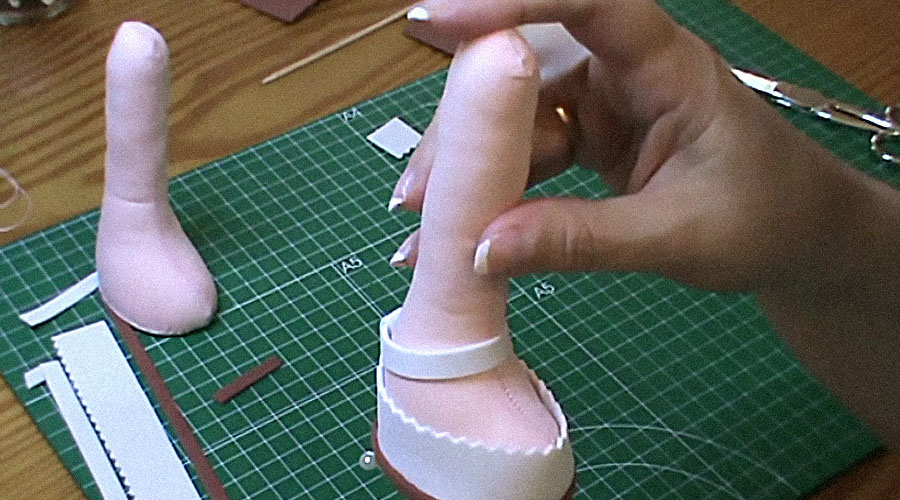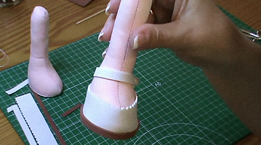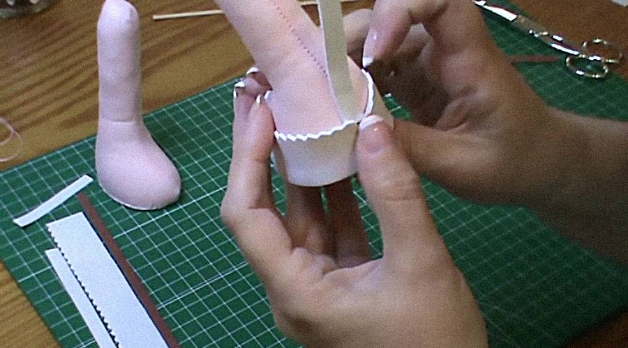 Шаг 6. Затем необходимо приклеить носочки обуви для куклы.