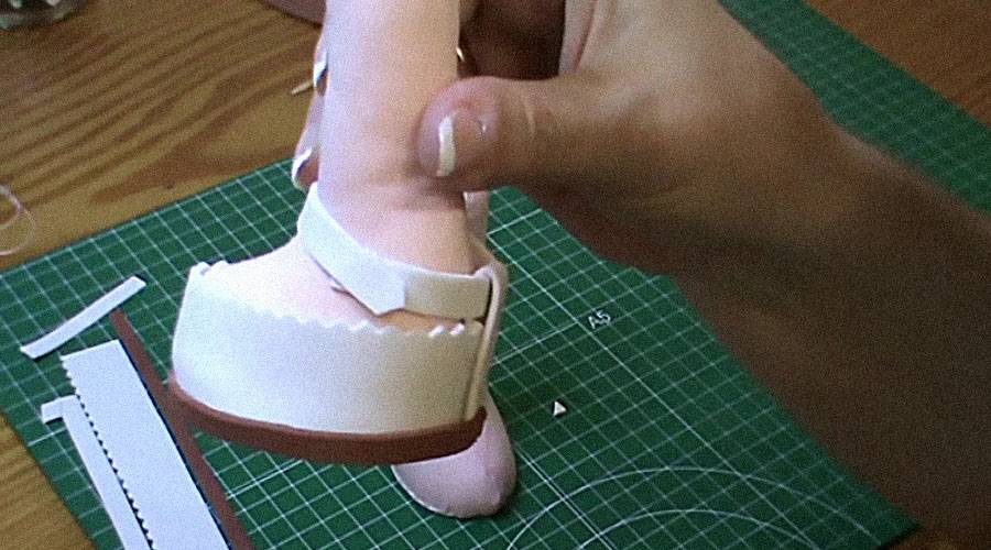 Изготовление обуви для кукол не представляет сложностей. Однако необходимо выполнять работу тщательно и аккуратно. Для куклы большеножки подошву вырезают из резины, картона, кожи или другого аналогичного материала. Размеры для этого получают, точно обведя карандашом кукольную ножку.