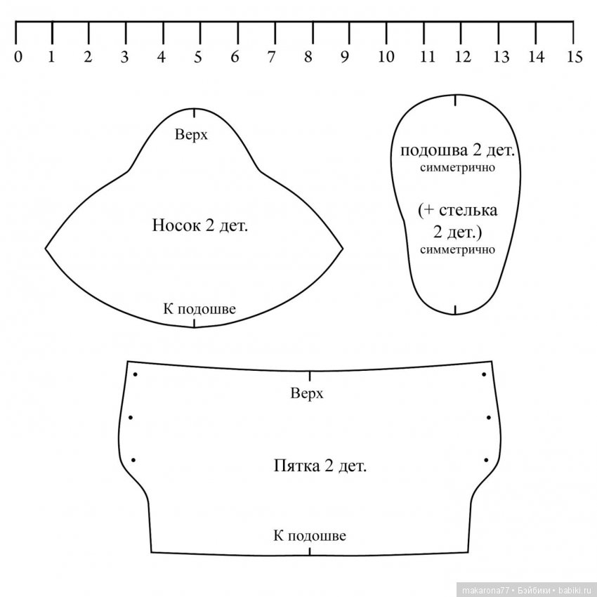 Когда изготавливаются ботинки для куклы выкройка выглядит следующим образом.