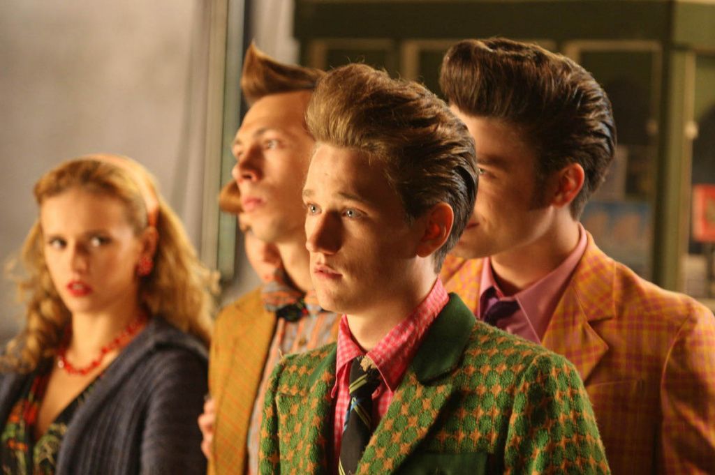 В 50-х самой модной прической был начес как у Элвиса Пресли. Но в наше время трудно найти мужскую половину населения, которые смогут позволить сделать себе такой начес. Потому прическу парней оставляем как есть J. Но вот в одежде можно разгуляться. Выбор огромен: от старых огромных пиджаков, до облегающих, приталенных пиджаков с самыми немыслимыми расцветкамии принтами. При выборе наряда не бойтесь посмотреть в сторону таких ярких цветов, как фуксия, красный, голубой, зеленый. Также мужчины-стиляги любили носить штаны-дудочки (в клеточку и с подтяжками). Неизменными дополняющими атрибутами были галстуки в горошек из атласа и солнцезащитные очки с цветными линзами.