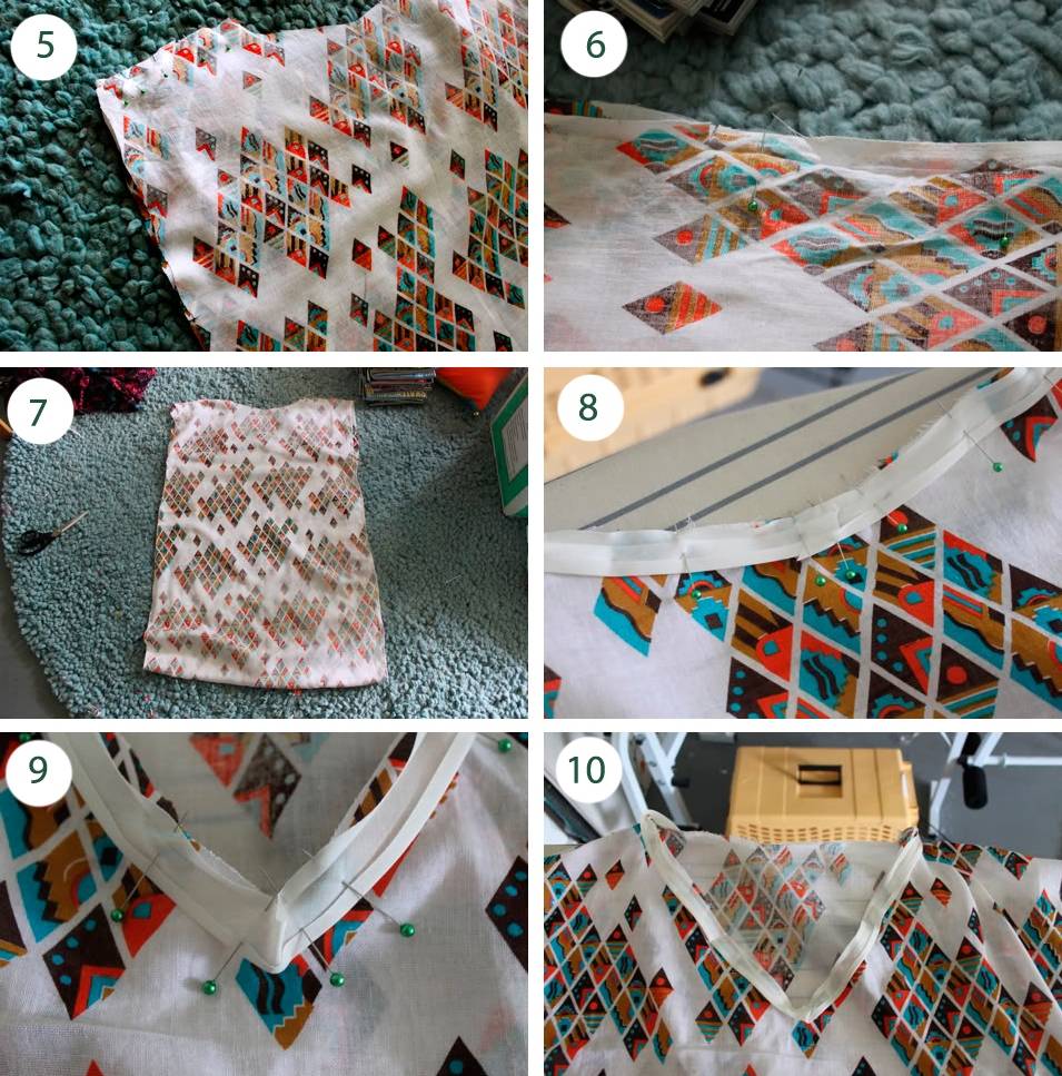 - самый легкий вариант — туника без выкройки, которая шьется просто из платков.