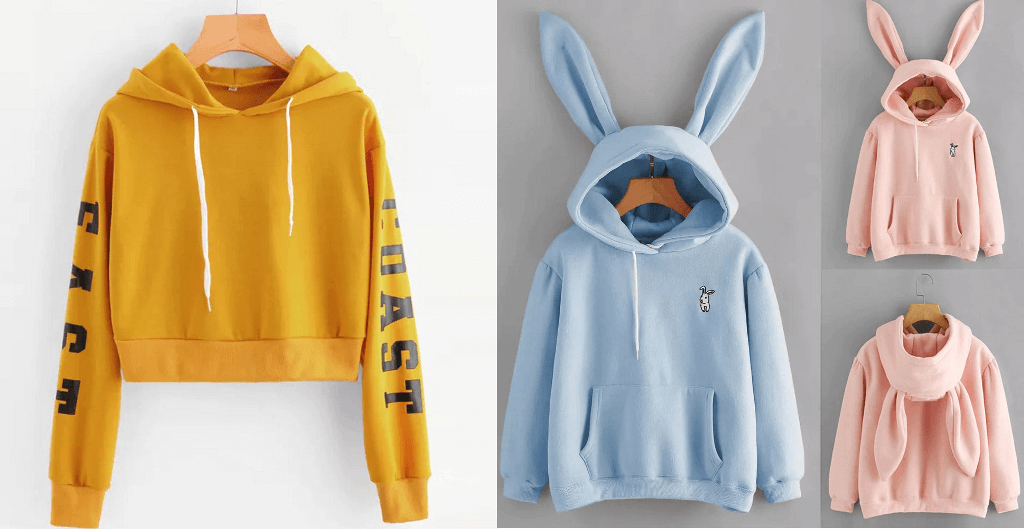 При этом производители чаще всего выпускают такие кофты в ярких тонах. Они могут быть как однотонными, так и с необычным или крупным принтом, надписями. Женские модели также могут быть украшены забавными ушками на капюшоне.
