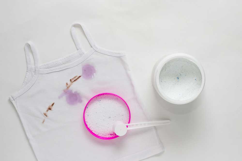 Стиральным порошком для детских вещей можно обрабатывать не только одежду ребенка, но и другой текстиль, испачканный акварелью. Вещества, входящие в состав порошка активно воздействуют на компоненты красок, расщепляя их на более мелкие вещества, благодаря чему краски успешно удаляются с материала. Поскольку в детском порошке отсутствуют агрессивные вещества, на определенных тканях пятна акварели выводятся не сразу, а только со второго раза, поэтому для наилучшего результата потребуется повторная стирка.