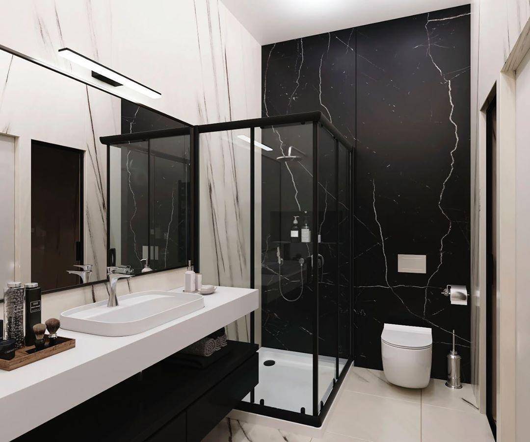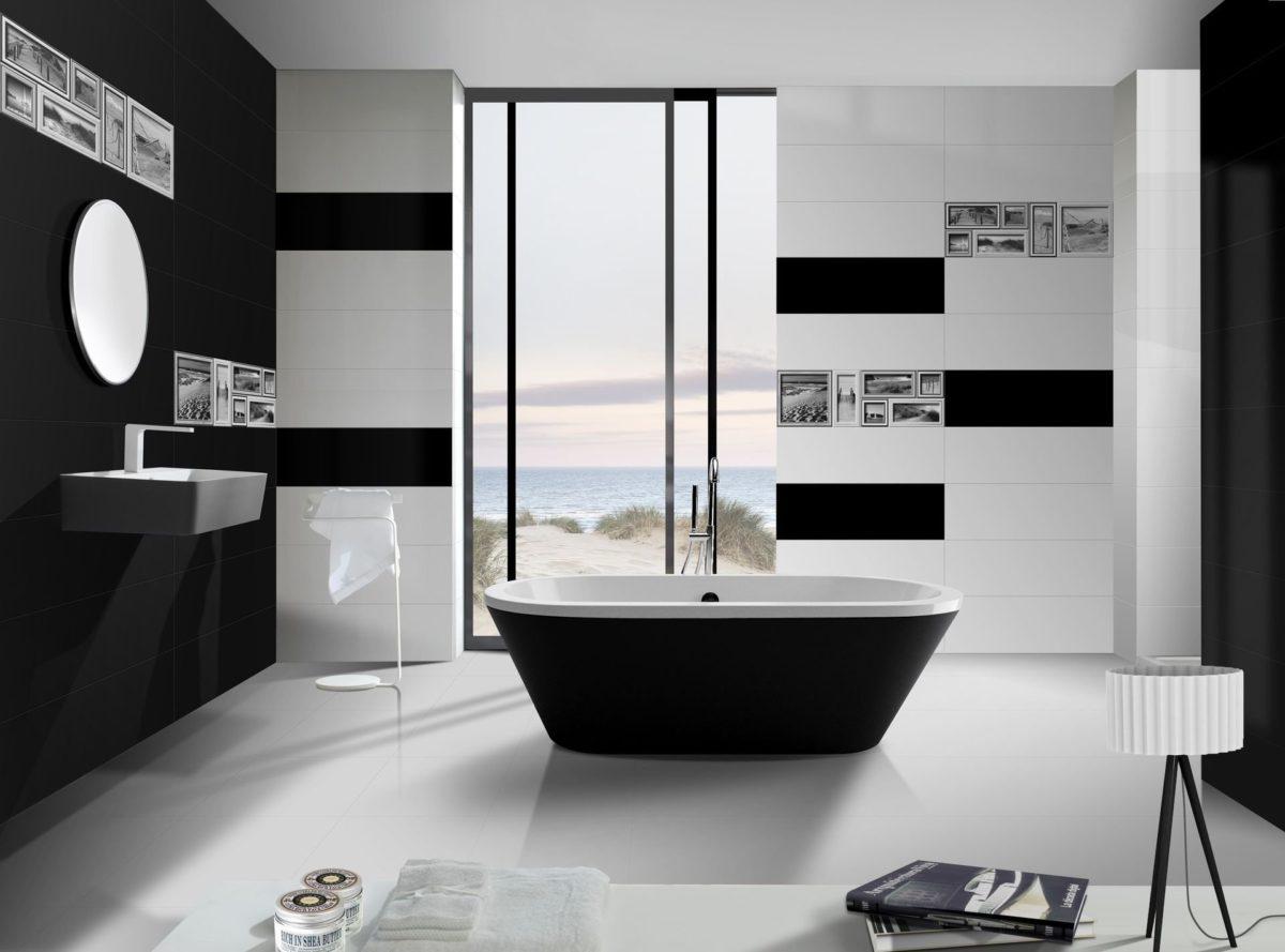 ДИЗАЙН-ИНТЕРЬЕРА ЧЕРНО-БЕЛЫЙ КАФЕЛЬ В ВАННОЙ КОМНАТЕ