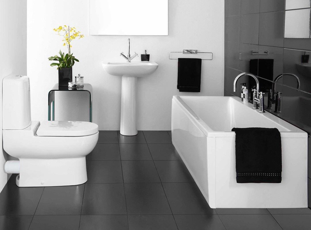 Немного чёрного цвета в стандартной ванной комнате полностью преобразит интерьер.