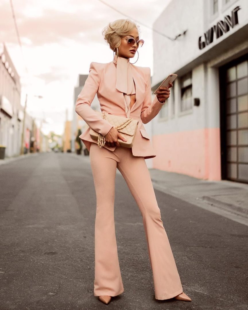 Самыми модными оттенками уличного стиля грядущей весны будут спокойные и постельные тона. Преобладание в одежде прозрачных тканей придает изделию обворожительный вид. К цветам образа подбирается топ с принтом, блузка с брошью, чтобы подчеркнуть изысканный вкус модницы. Актуальные цвета весны — это сияющие и сверкающие тона, которые дополняют спокойные цвета элементов одежды.