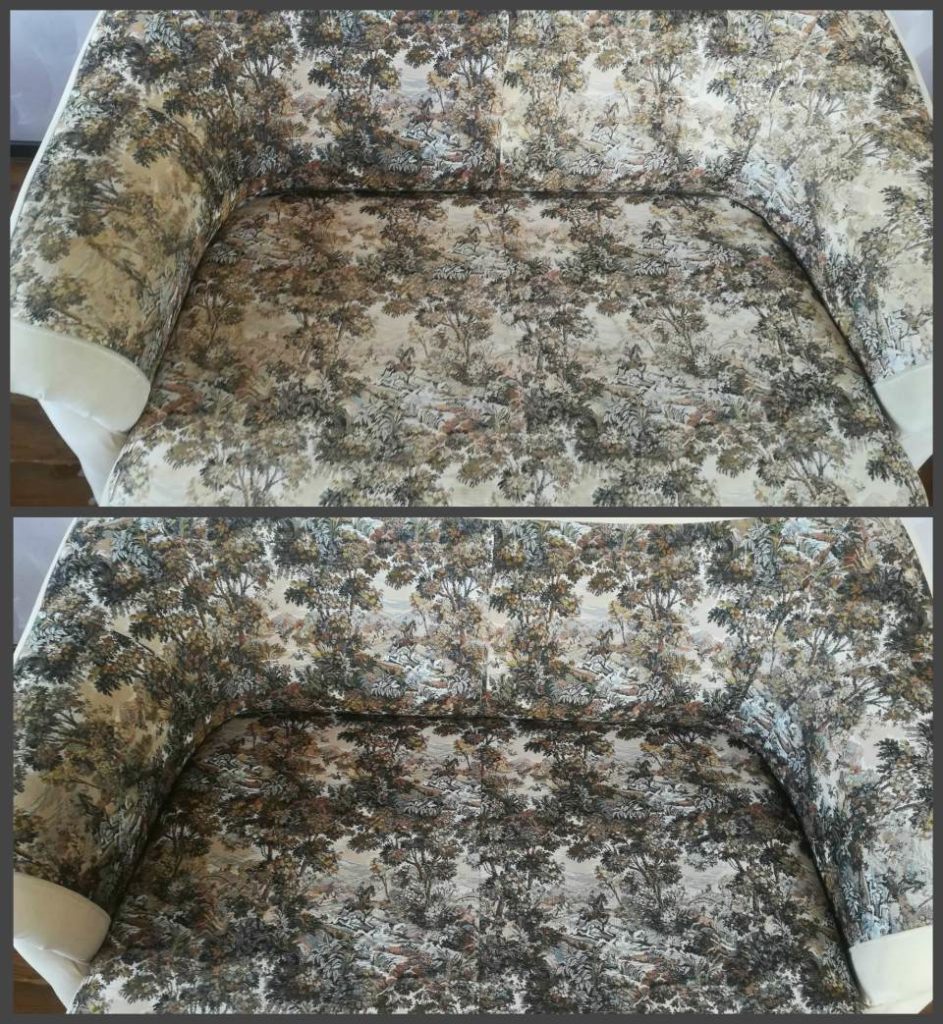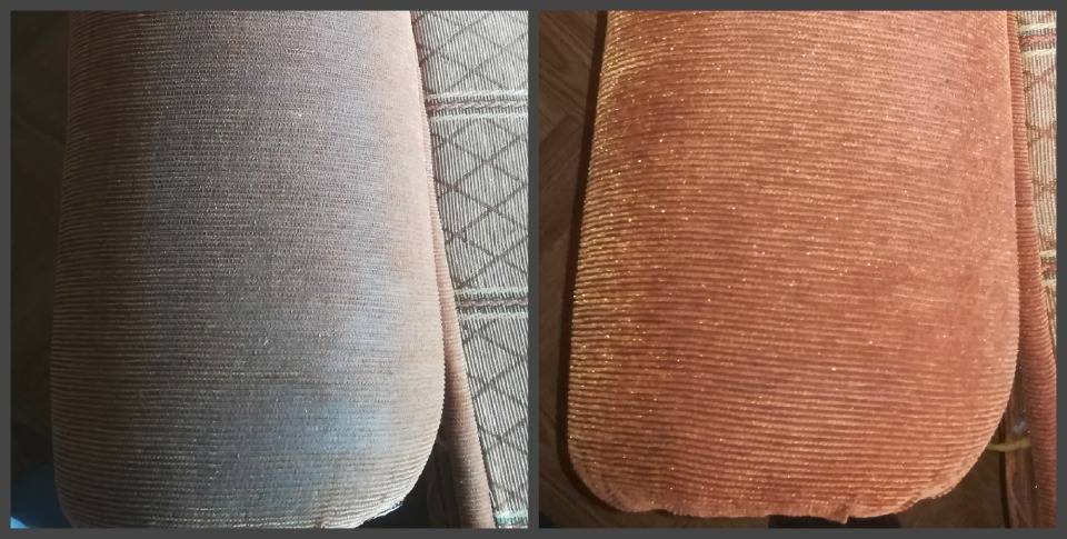Процесс чистки дивана из шенилла с жаккардовым узором