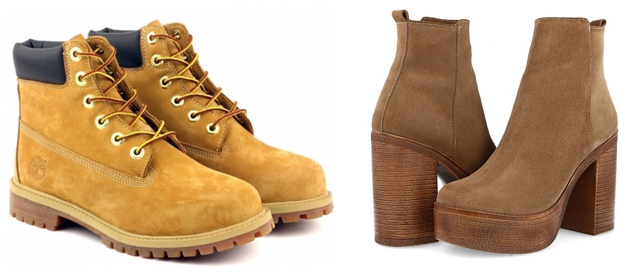 - Модель изделия может также посодействовать разобраться. Элитная шлифованная кожа употребляется почаще для обуви стильной, утонченной: дамских ботильонов на шпильке, мужских туфель. Нубук же почаще можно узреть в грубоватых башмаках типа Timberland.