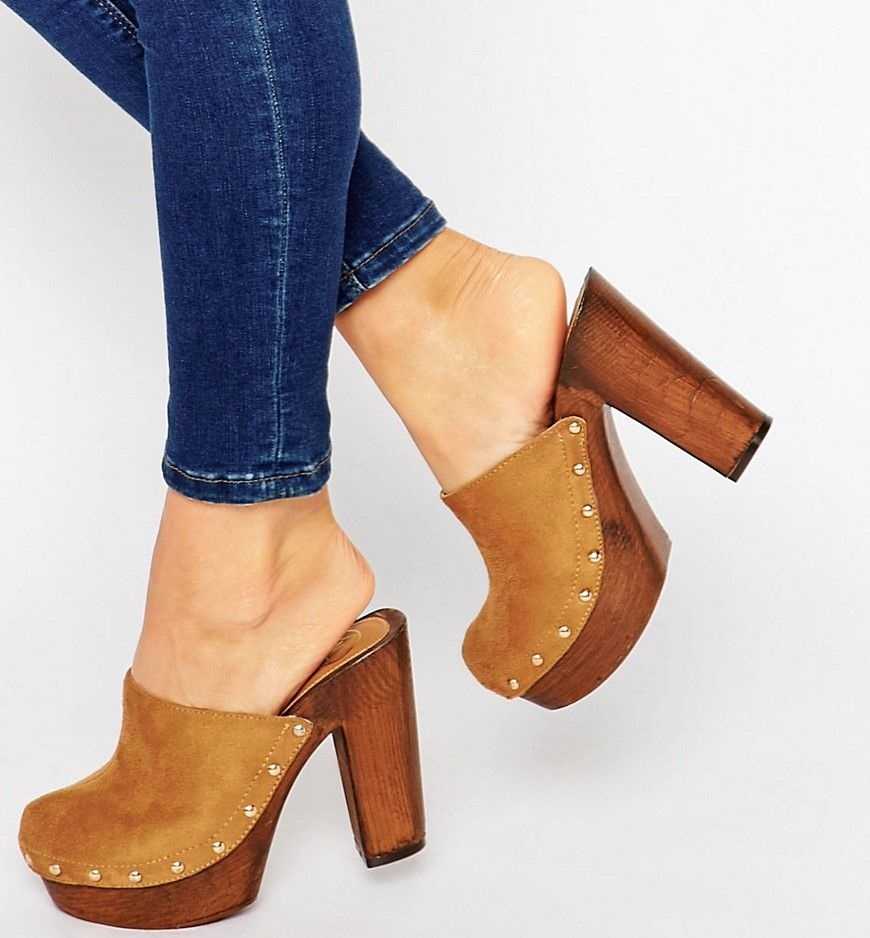 Сабо или клоги – модель с увеличенной толщиной подошвы. Подъем ступни закрыт материалом, а пяточная область остается свободной. Могут иметь высокий каблук, а также скрытую платформу. Похожую конструкцию имеют и бабуши. Но в этом случае мыс всегда заострен, а подошва абсолютно ровная. Похожи на них и мюли, конструкция которых также не предполагает наличия какого-либо задника. Нос у изделий может быть круглым или квадратным и открывать пальцы. Общей отличительной чертой обуви является приплюснутый сверху вид.