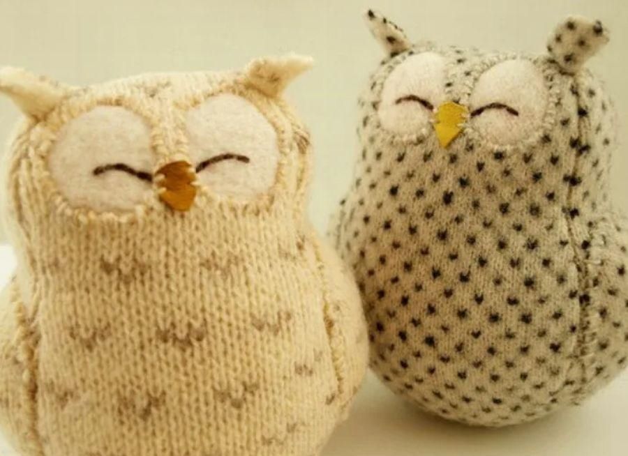 Только посмотрите каких милых совят можно сделать всего лишь из ненужного свитера. Милые совушки из старых свитеров так и лучатся позитивом. Сшиты вручную, набивка – синтепон.