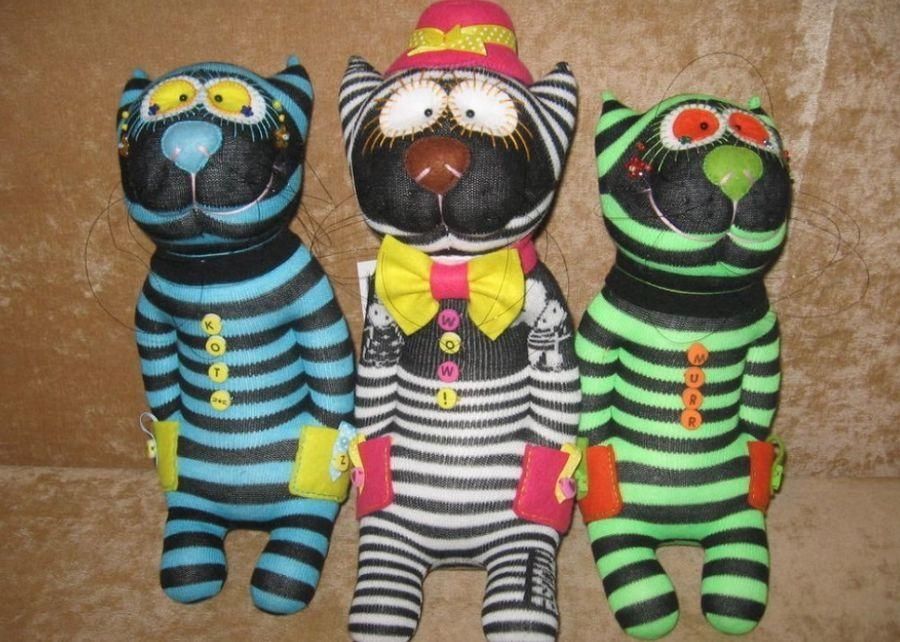 Первым делом мы с вами обратим внимание на таких оригинальных и симпатичных котиков-полосатиков. Для дополнения образа к ним можно придумать различные аксессуары и украшения