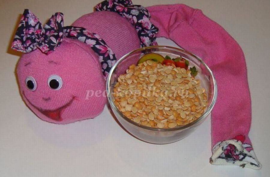 На подходе у нас такая оригинальная игрушка, как гусеничка. Получится очень интересная игрушка из ненужных колготок. В дальнейшем она послужит хорошим другом для вашего ребёнка.