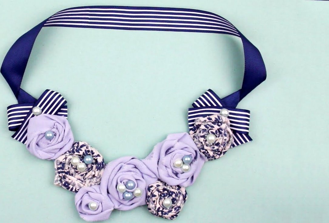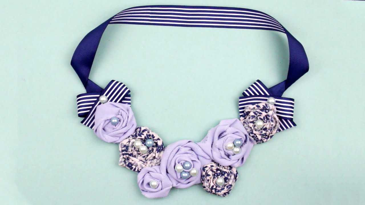 Куда же без украшений для женщин и девочек из ненужной или новой ткани. Такие изделия не только придадут одежде изыск и оригинальность, но и способны вернуть ей первоначальный привлекательный вид, скрыв следы ремонта и прочие изъяны. Первое, с чего необходимо начать, — это подготовить ткань. Ее следует нарезать на равные полосы около одного сантиметра в ширину. Материал нужно растянуть в длину, чтобы завернулись края ткани. Далее происходит плетение. Плести можно любым методом по желанию, оставляя концы для крепления. После завершения ручную работу нужно прикрепить к декоративной цепочке, заранее выбрав длину.