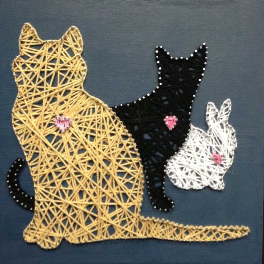 Новогодняя игрушка из фанеры, гвоздей и ниток