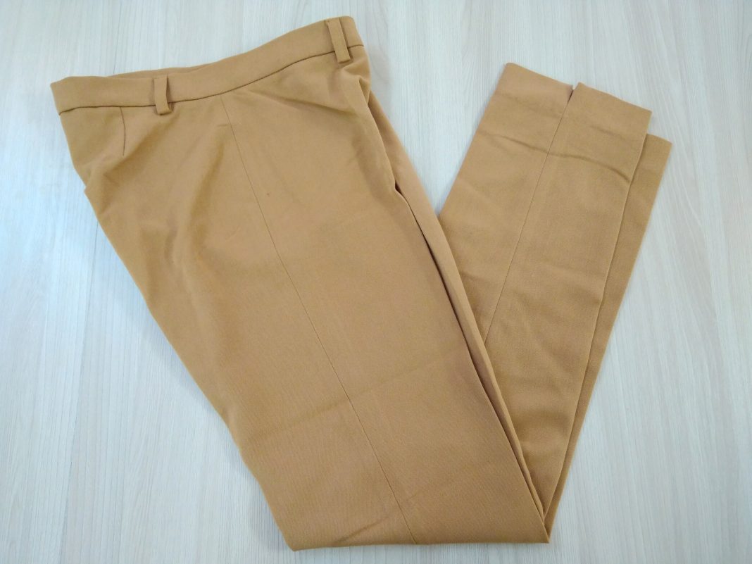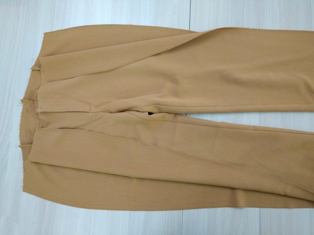 Для переделки мне понадобилась ткань наиболее близко подходящая по составу и качеству к материалу брюк, я взяла плотную костюмку. Так же эта ткань не должна быть растяжимой или стрейчевой, потому что я буду кроить не по — правилам, а именно по поперечной. Для того чтобы рассчитать расход ткани для лампасов нужно знать ширину будущей вставки: