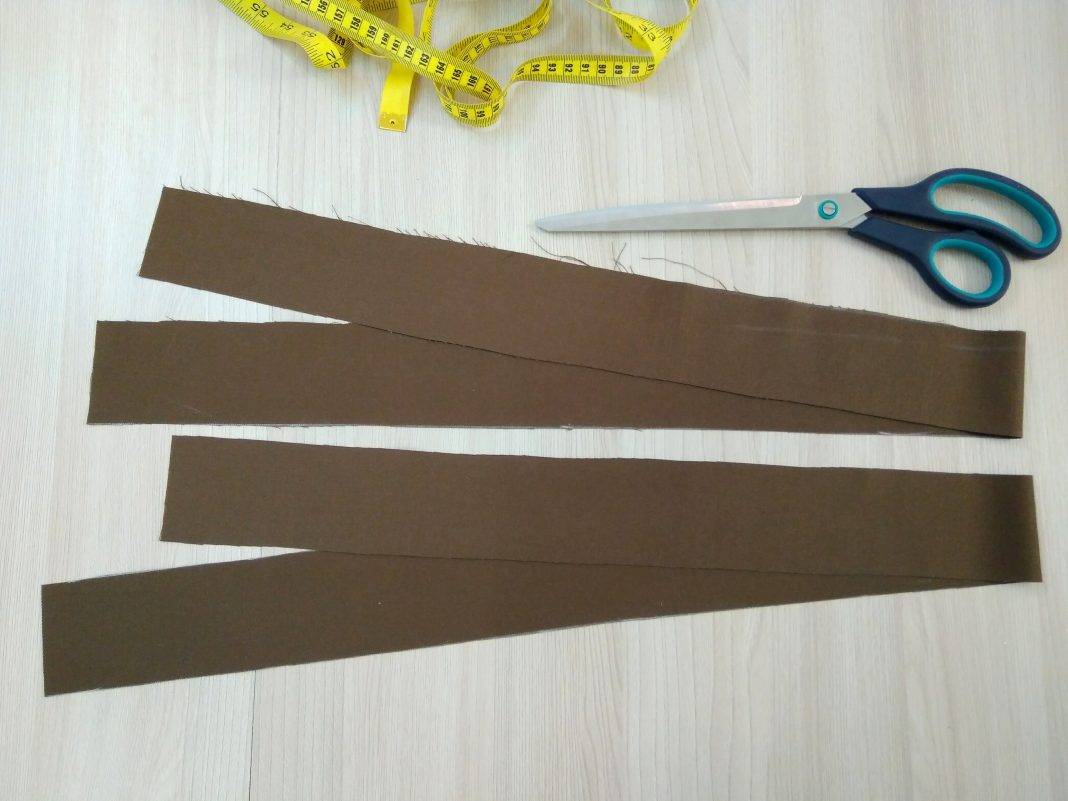02. Выкраиваю лампасы — полоски ткани с параметрами 6*100 см., то есть в готовом виде мои лампасы будут шириной 4 см., а длина равна длине брюк по боковому срезу.
