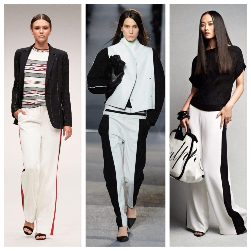 Фэшн-блогеры рекомендуют обратить внимание также на цвет и ширину лампасов. Если полоса узкая, то желательно, чтобы их было две, причём разного цвета и не обязательно одной ширины