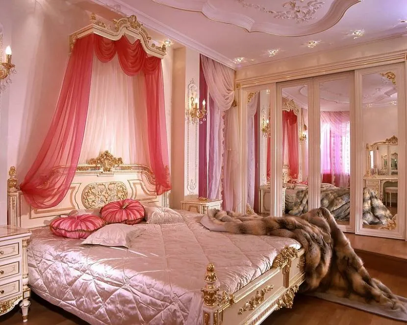 Желательно оформить таким цветом отдельную зону помещения. Внутри женской спальни подиум, занавески, покрывало могут подчеркнуть, что здесь располагается место для отдыха.