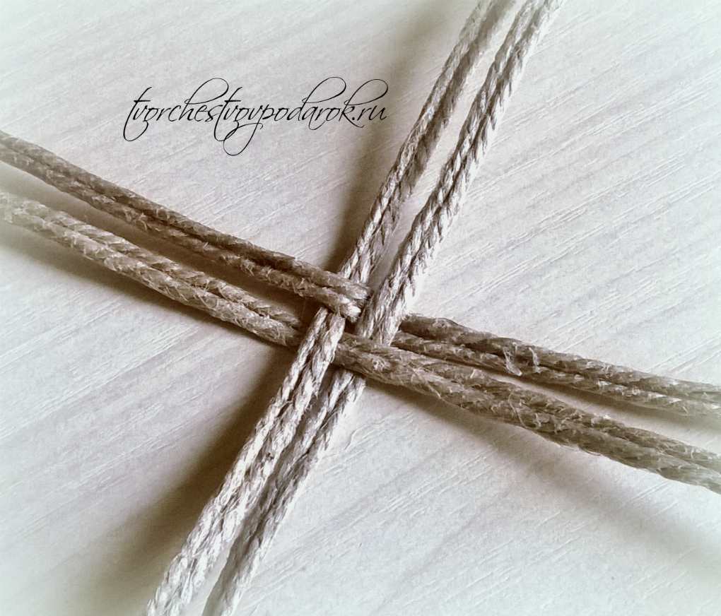 В работе можно использовать шпагат или джут натурального цвета, окрашенный или выбеленный.