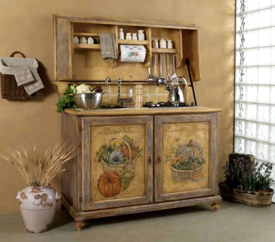 Комод оформлен в стиле прованс и состарен искусственно специально для кухни.